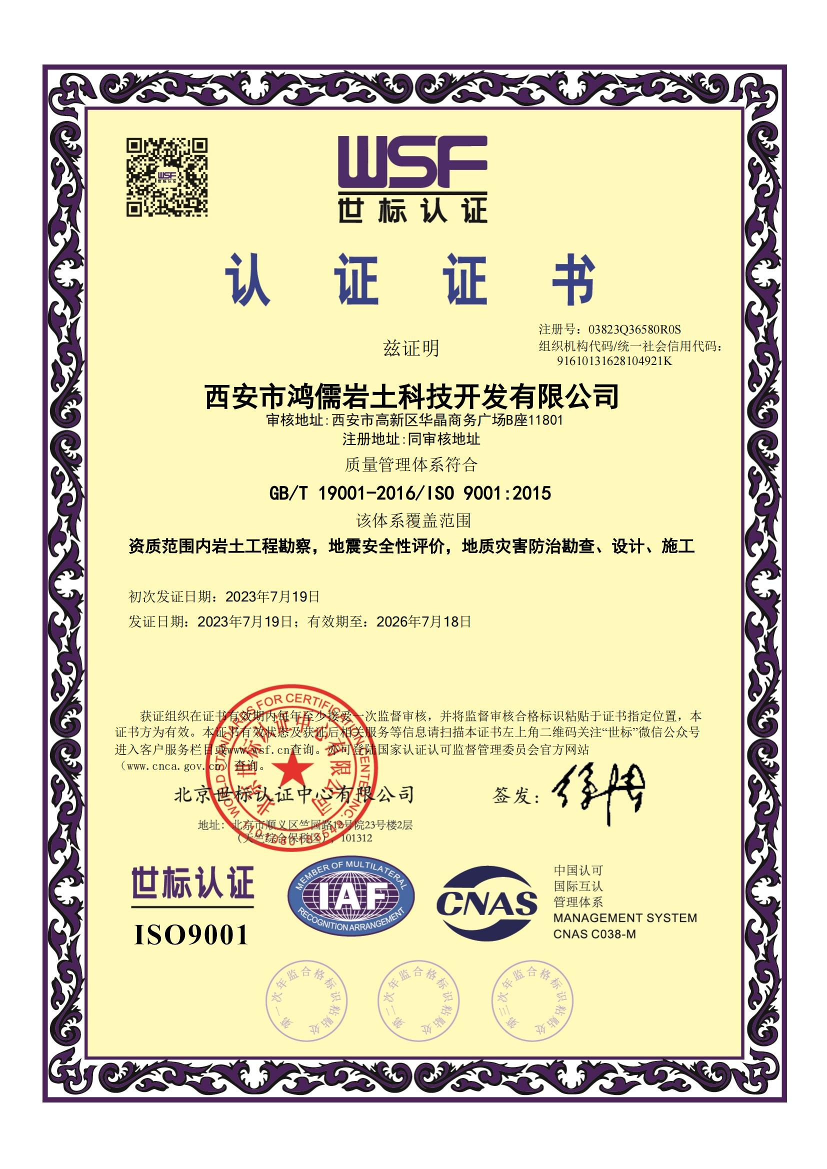 公司現為中國地質災害防治工程行業協會、西安高新技術企業協會、中國工程咨詢協會會員單位,陜西省勘察設計協會、陜西省減災協會理事單位,中國公路學會工程地質和巖土分會常務理事單位,連續多年被評為“陜西省工程勘察與巖土行業誠信單位”。